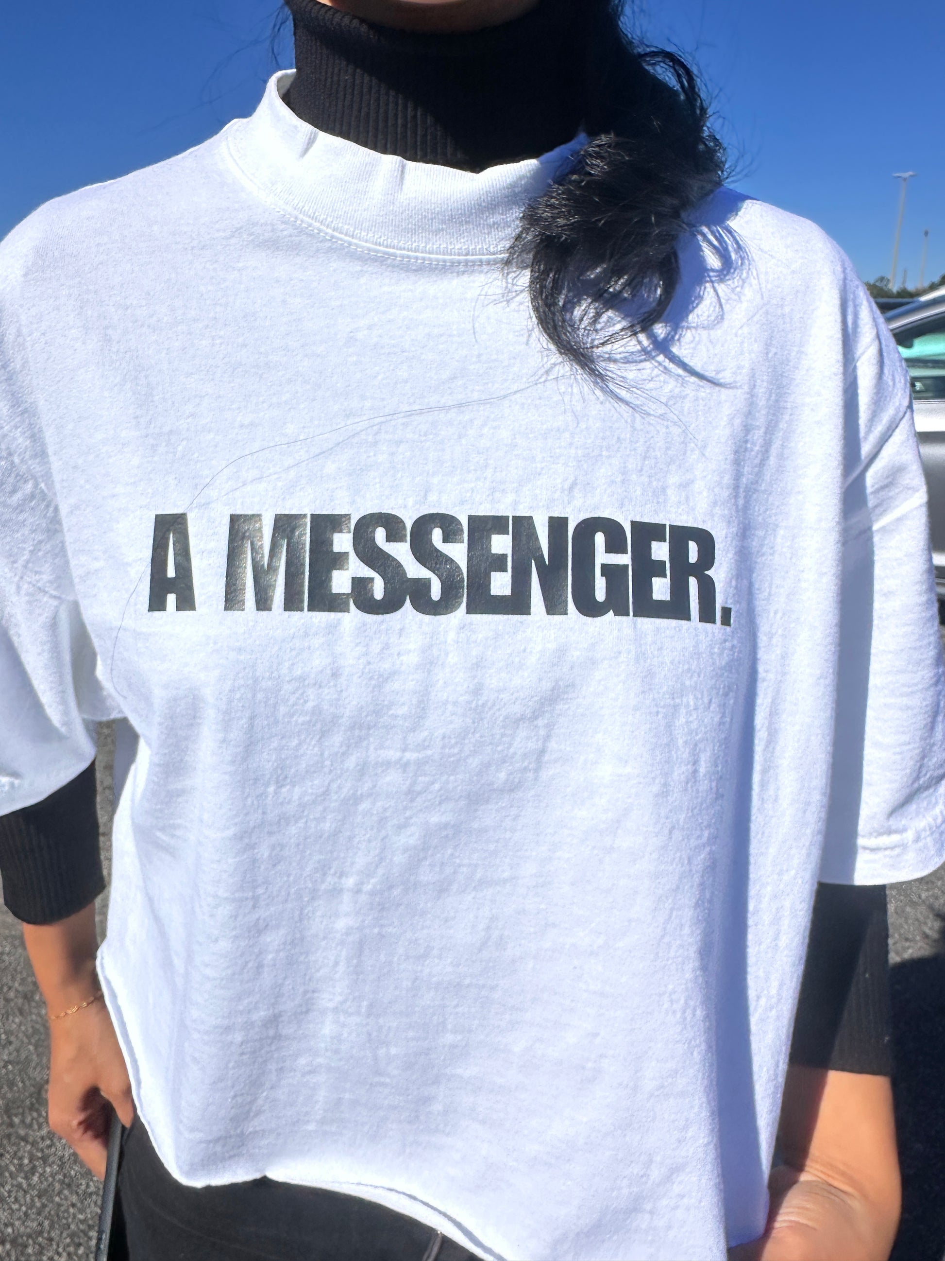 • Front print: “A Messenger.”